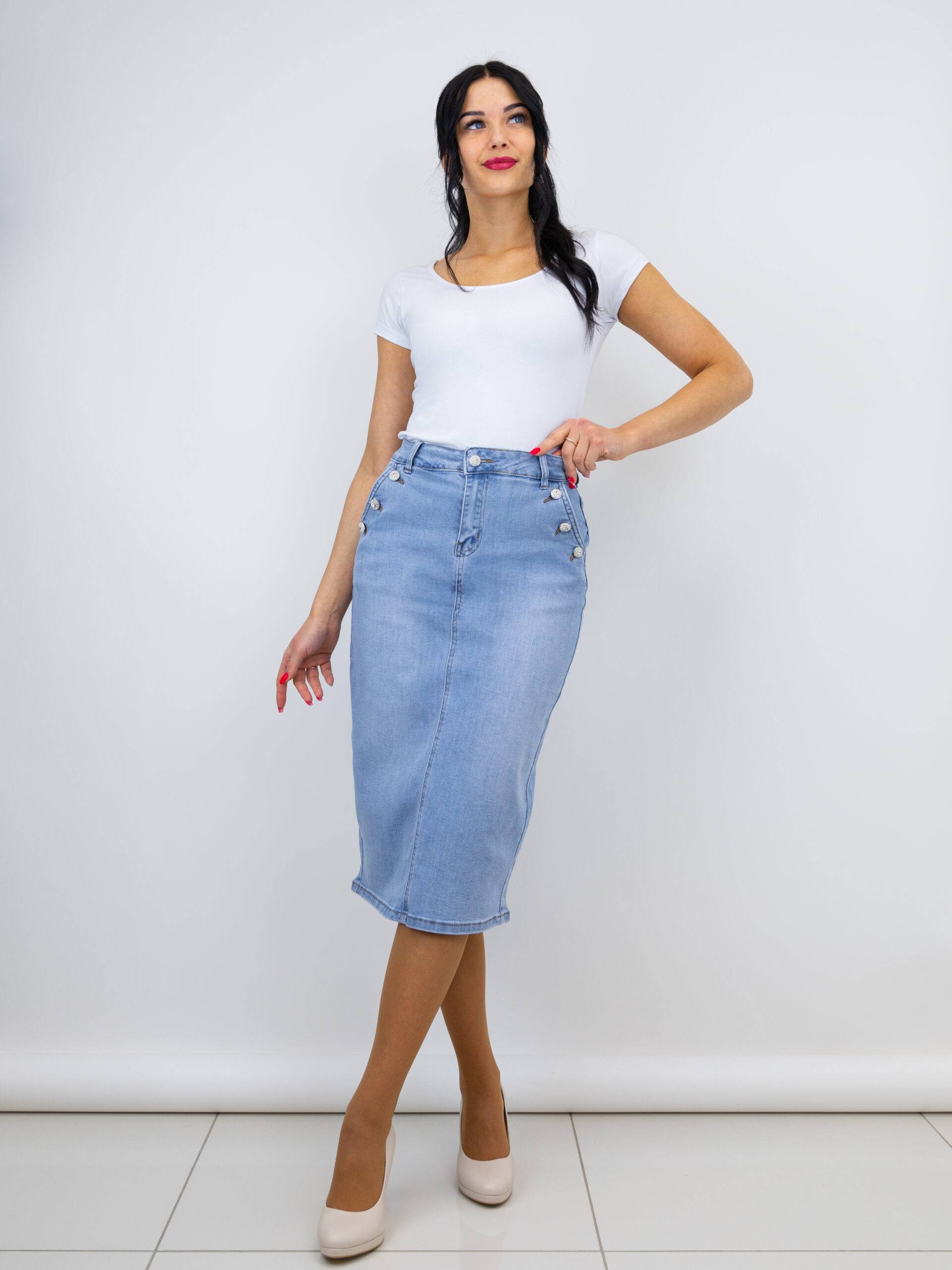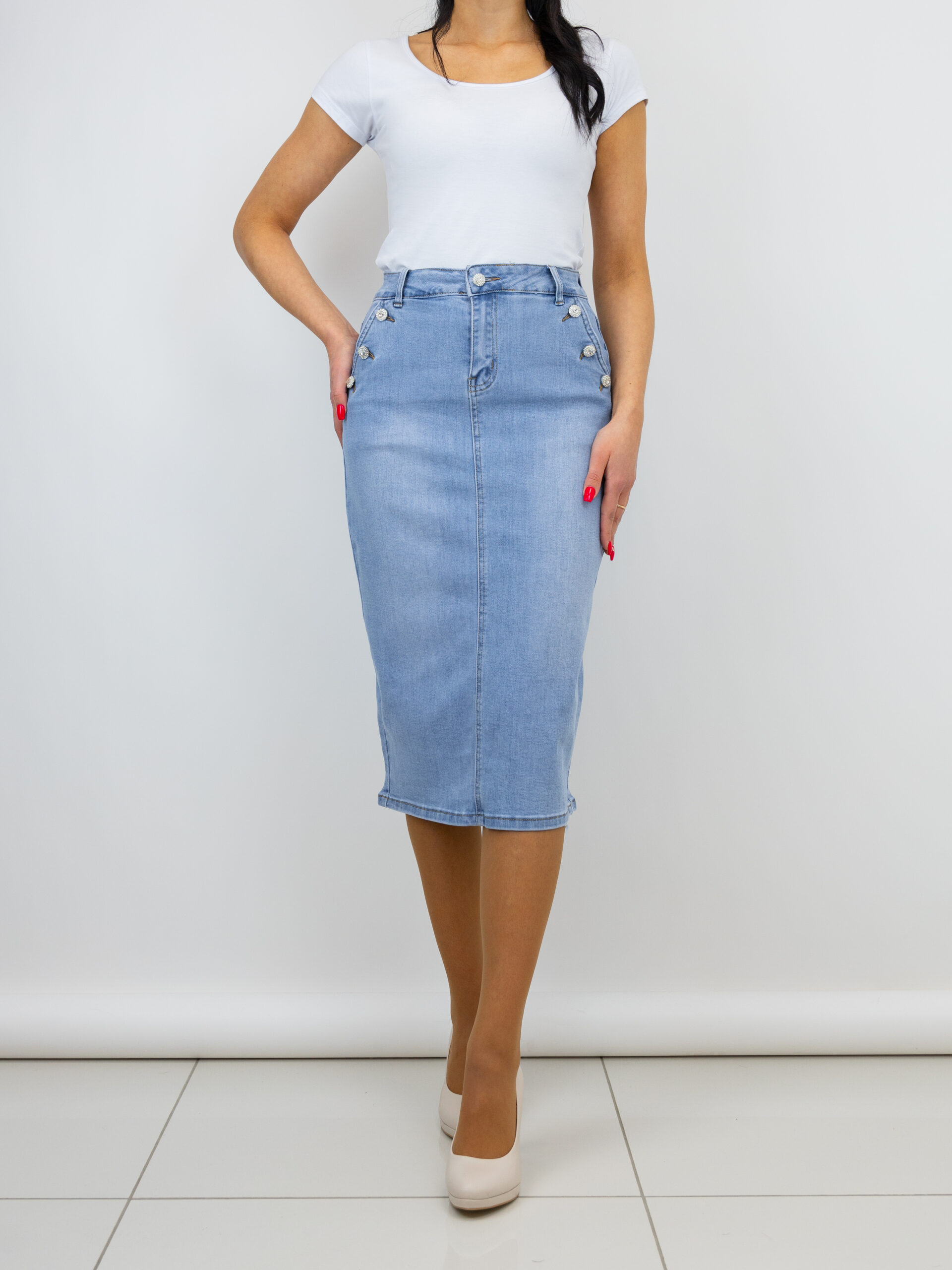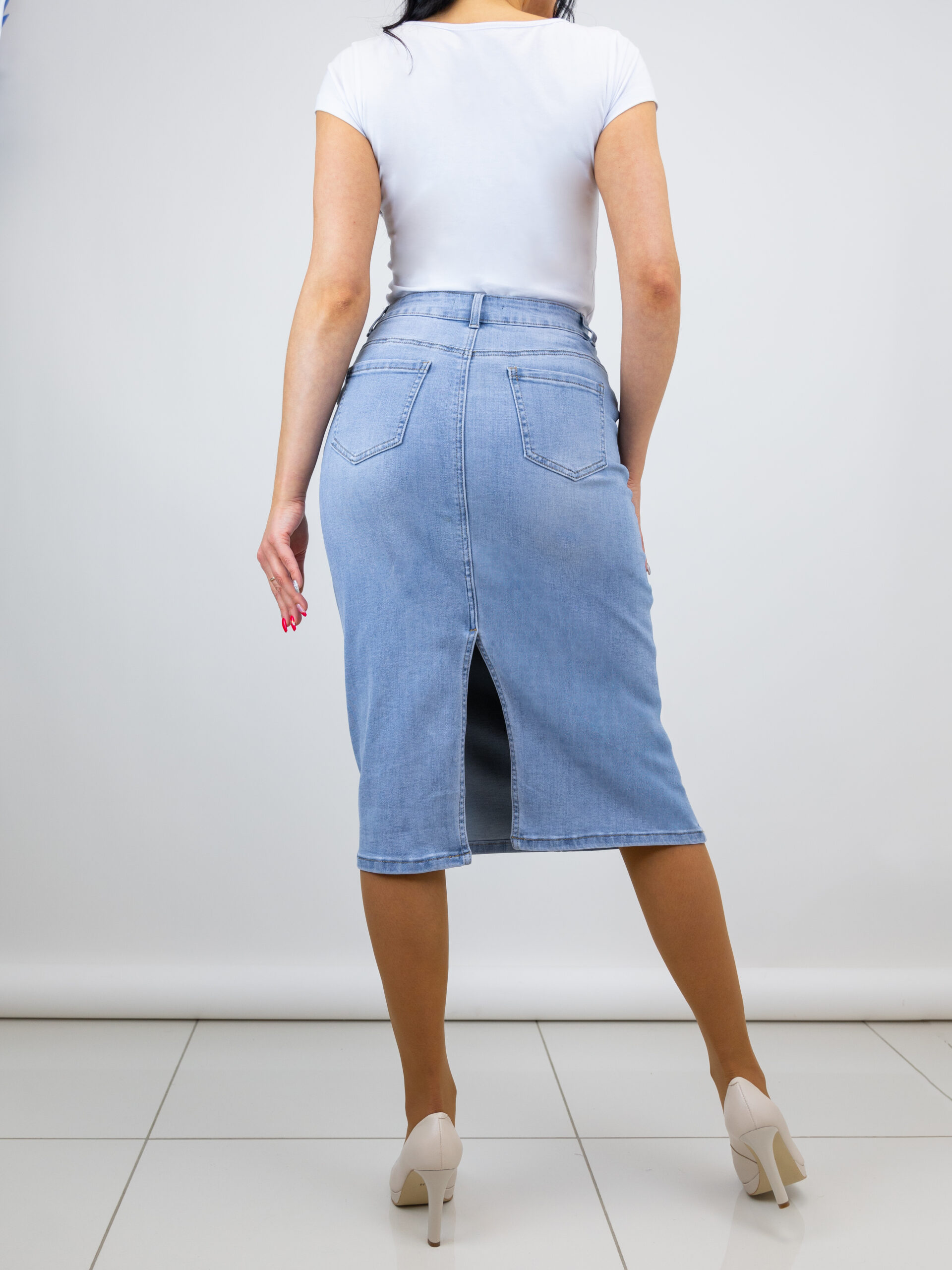 Džinsa svārki ar šķēlumu aizmugurē