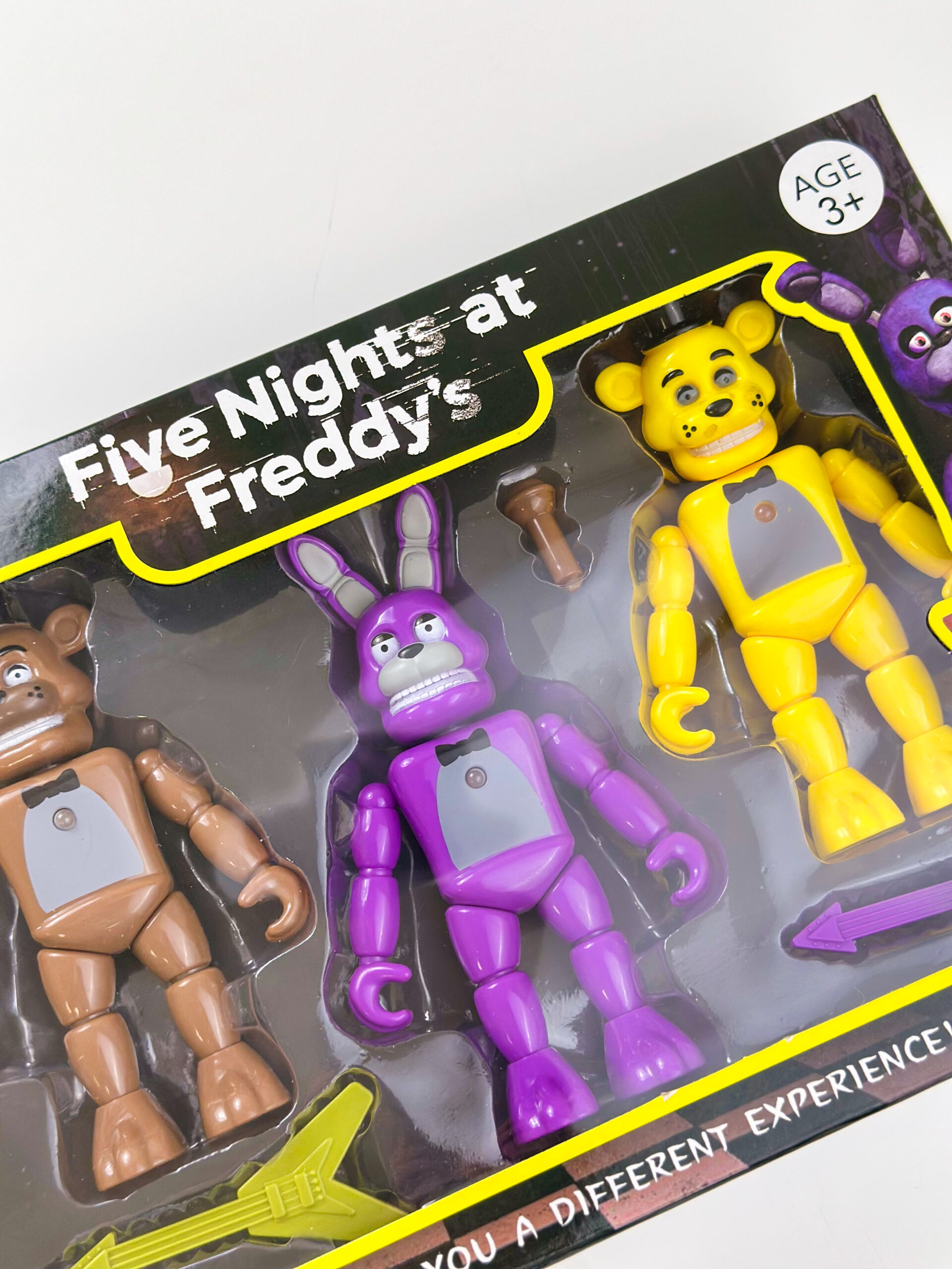 Šis figūriņu komplekts, kas iedvesmots no ikoniskās spēles “Five Nights at Freddy’s” (FNAF), ir lieliski piemērots šīs tumšās un aizraujošās franšīzes jaunajiem faniem. Ar četriem unikāliem tēliem bērni var atjaunot spēles aizraujošākos mirkļus vai radīt savus scenārijus, kas ir pilni spriedzes un piedzīvojumu. Šī rotaļlieta apvieno spēles aizraušanos ar radošu spēlēšanos.