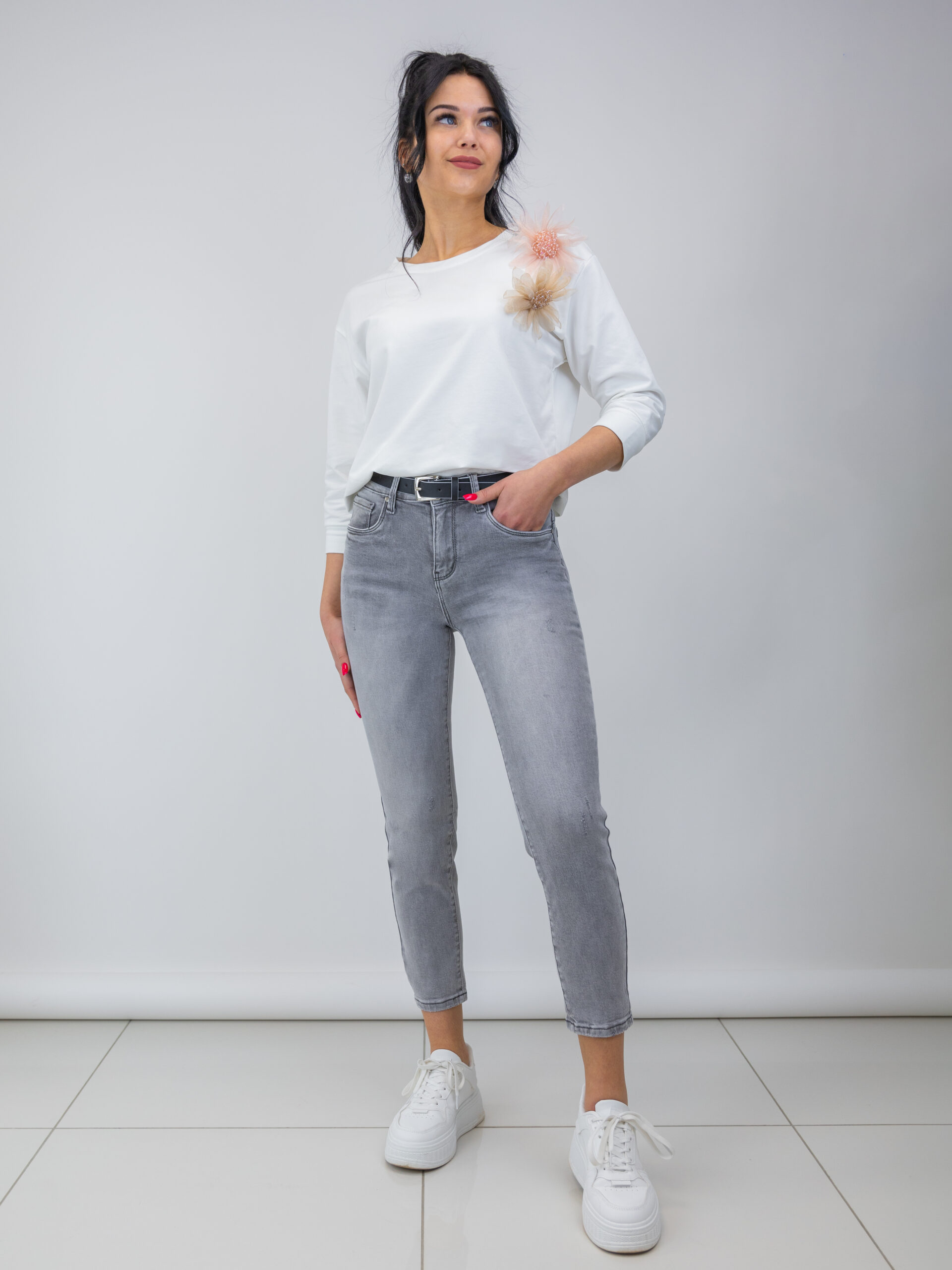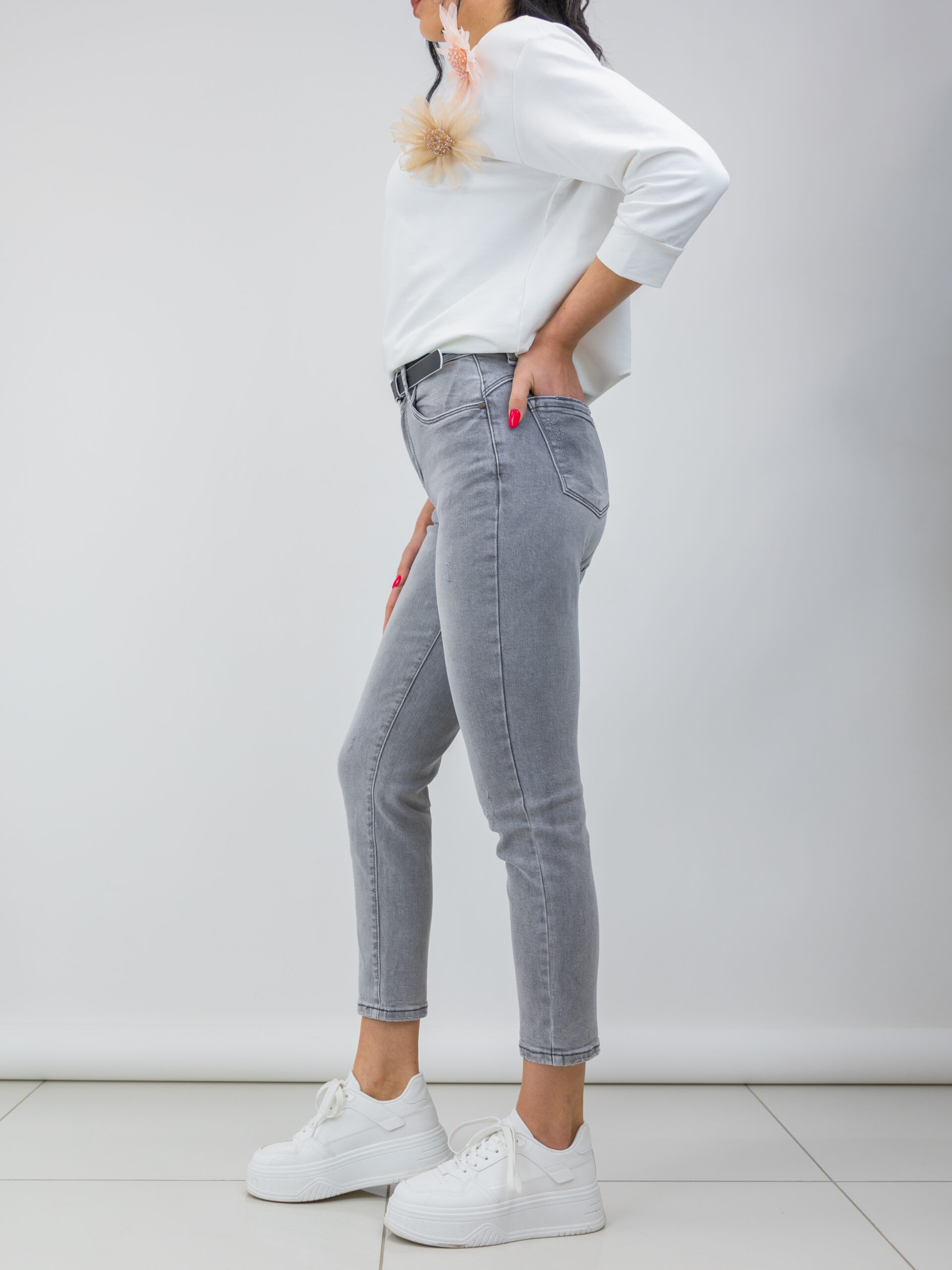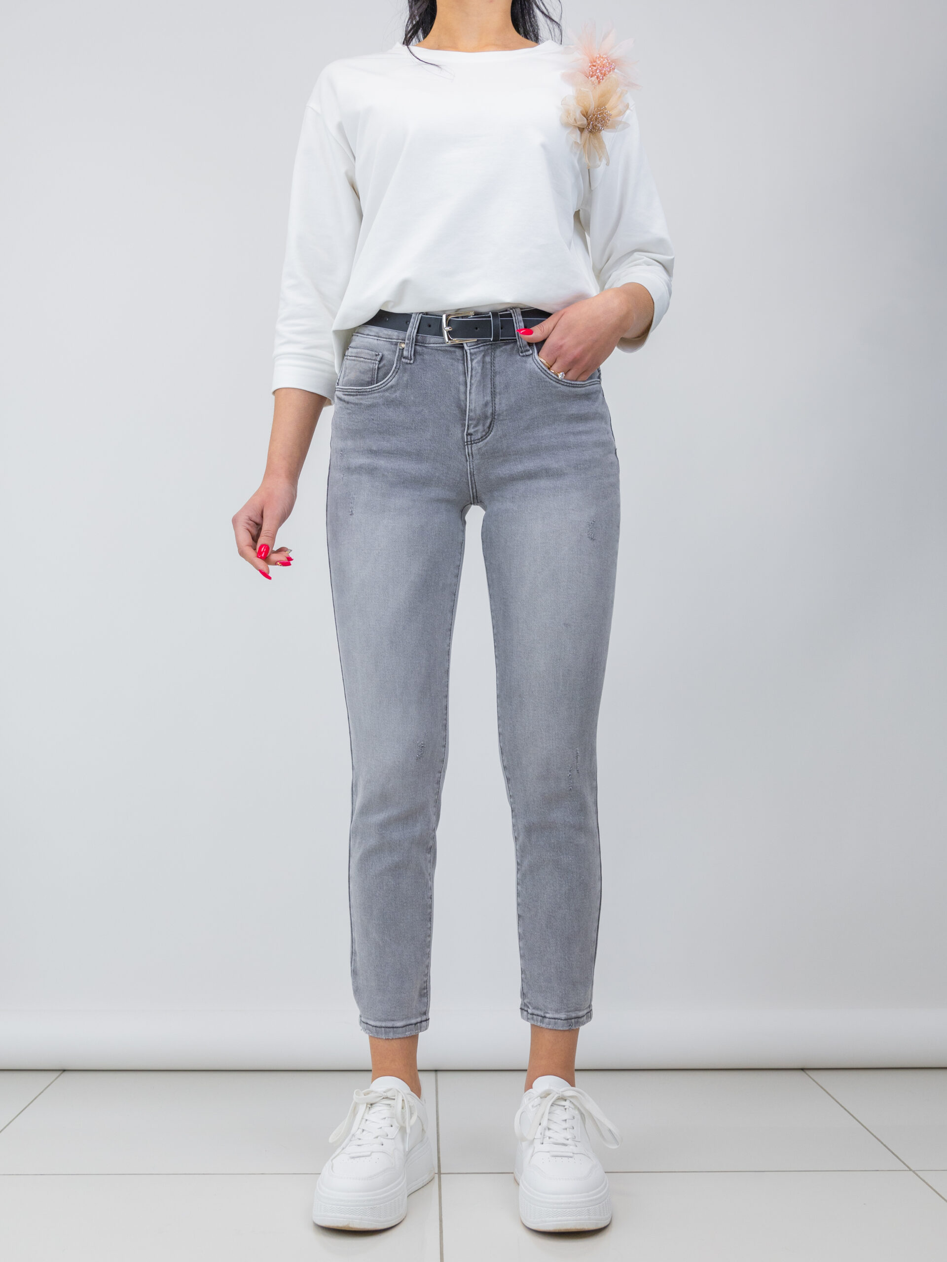 Mom Fit pelēkas džinsa bikses