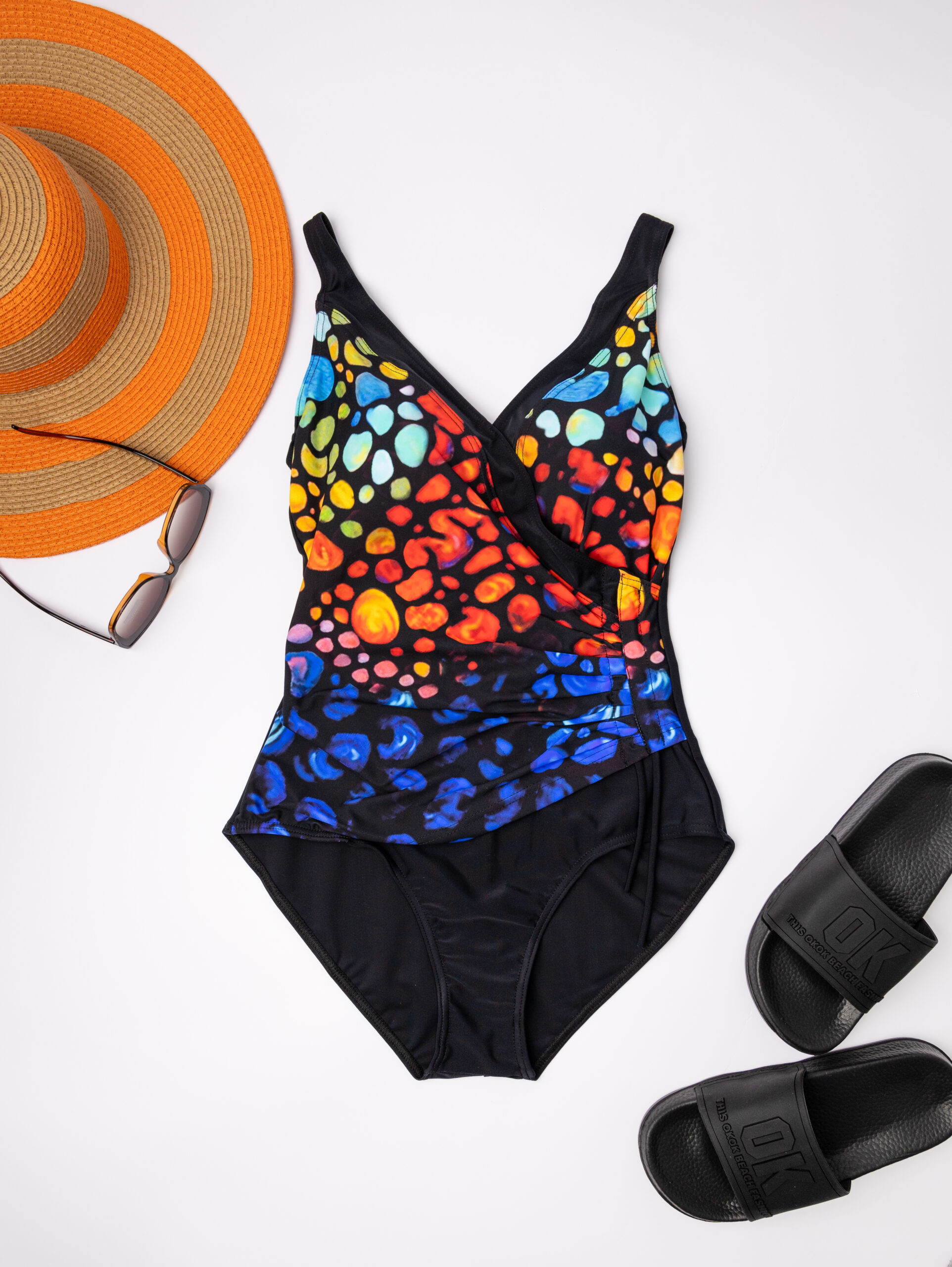 Melna, Neona oranža, Zila